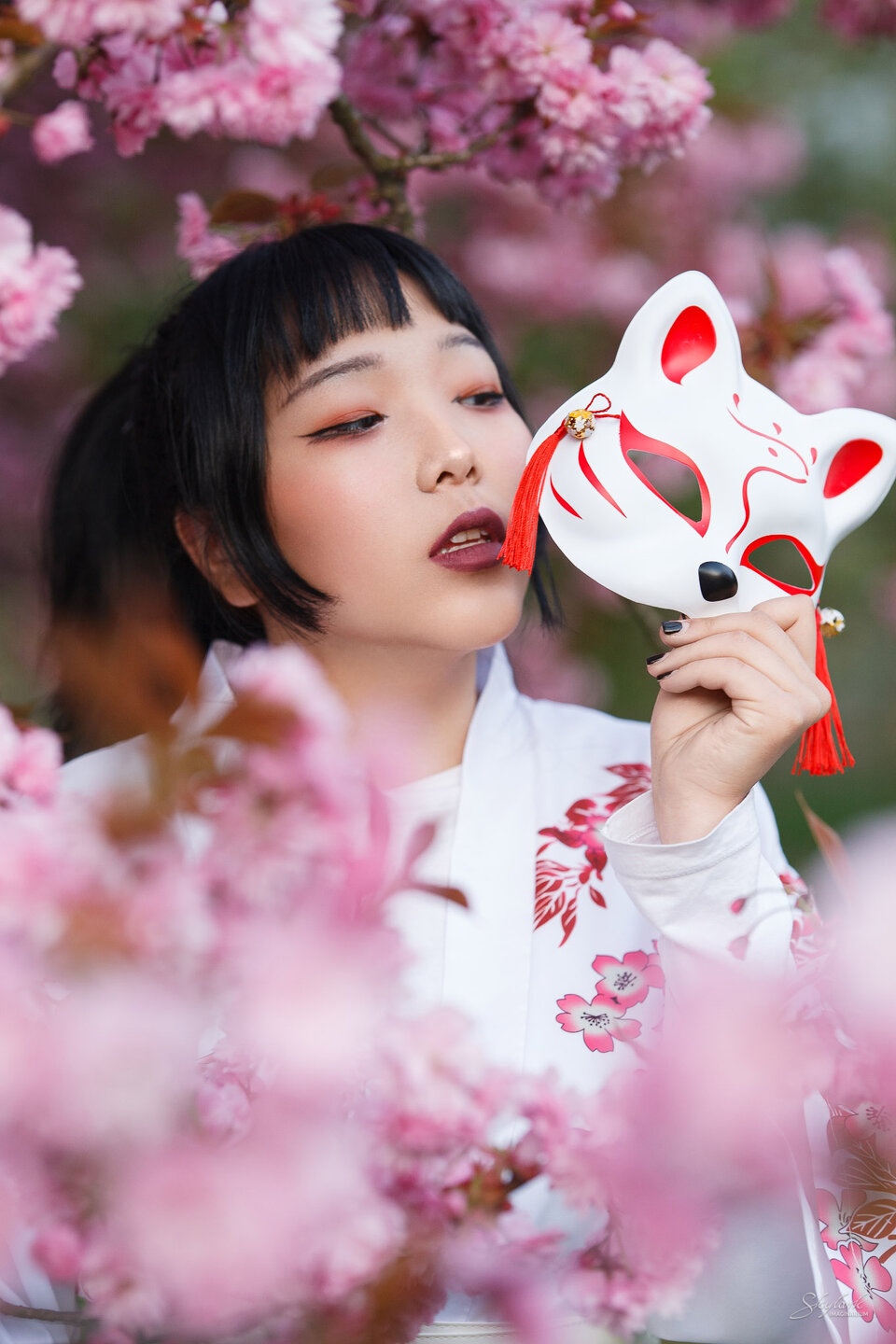 Schodów jednak ciąg dalszy nastąpił. Okazało się, że przestrzeliłem z terminem i pierwsza z wiśni w Ogrodzie Botanicznym już przekwita. Na szczęście pierwsza to nie ostatnia. Kolejne odmiany były w pełnym rozkwicie. Niestety czasu na samą sesję mieliśmy dosyć mało, a jak na mój standard spokojnego wgryzania się w temat to wręcz niewiele. Cieszę się jednak, że sesja doszła do skutku i jest z niej kilka fajnych kadrów, chociaż mały niedosyt został. Kto wie może jeszcze temat powróci.